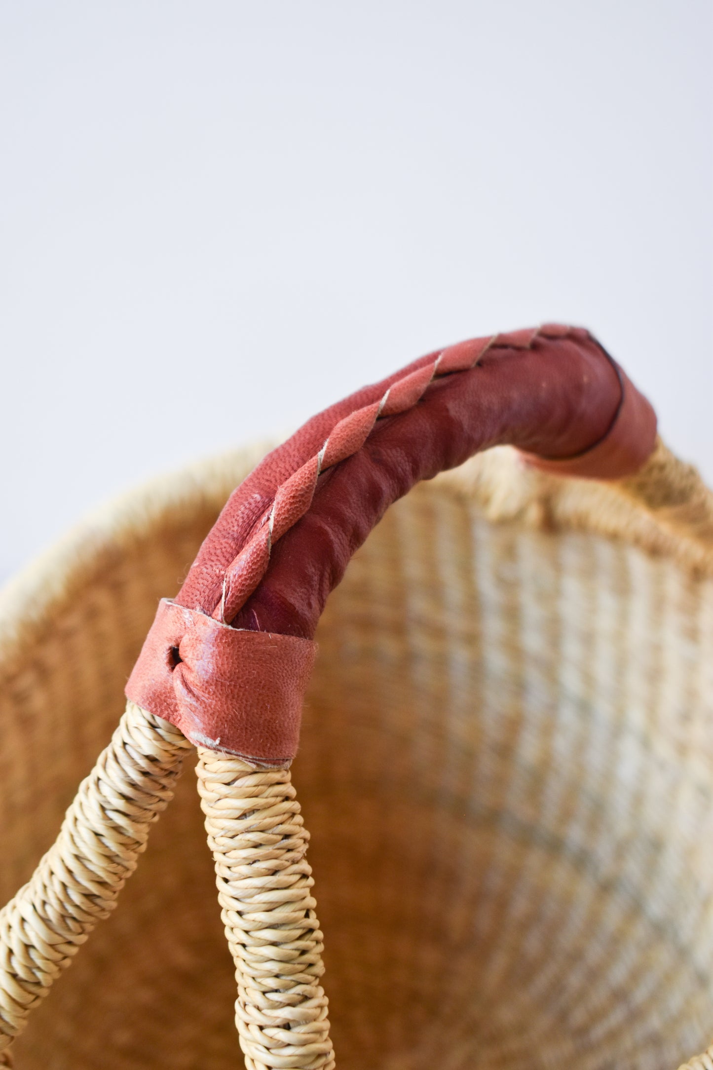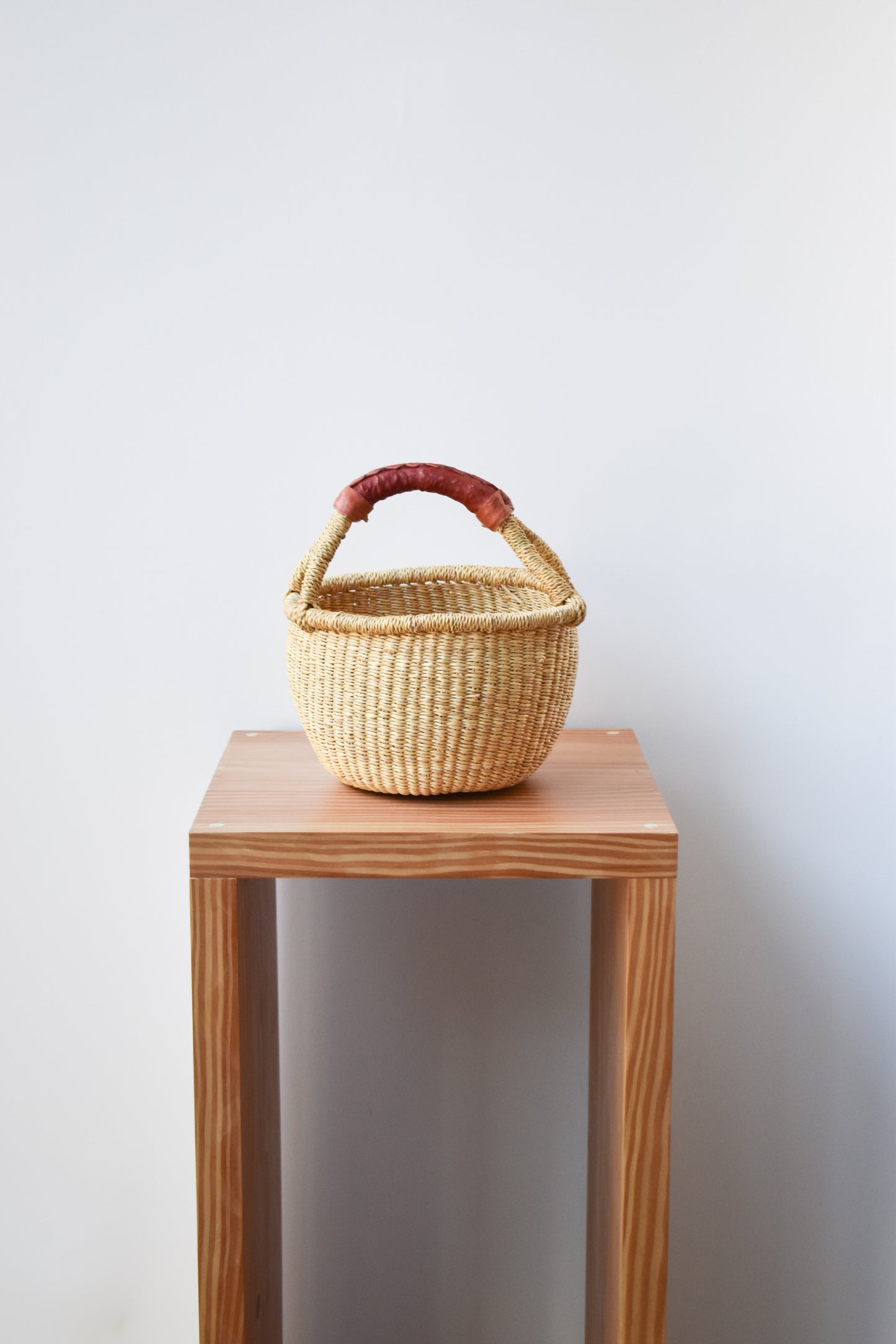 Natural Mini Round Basket (leather handle)