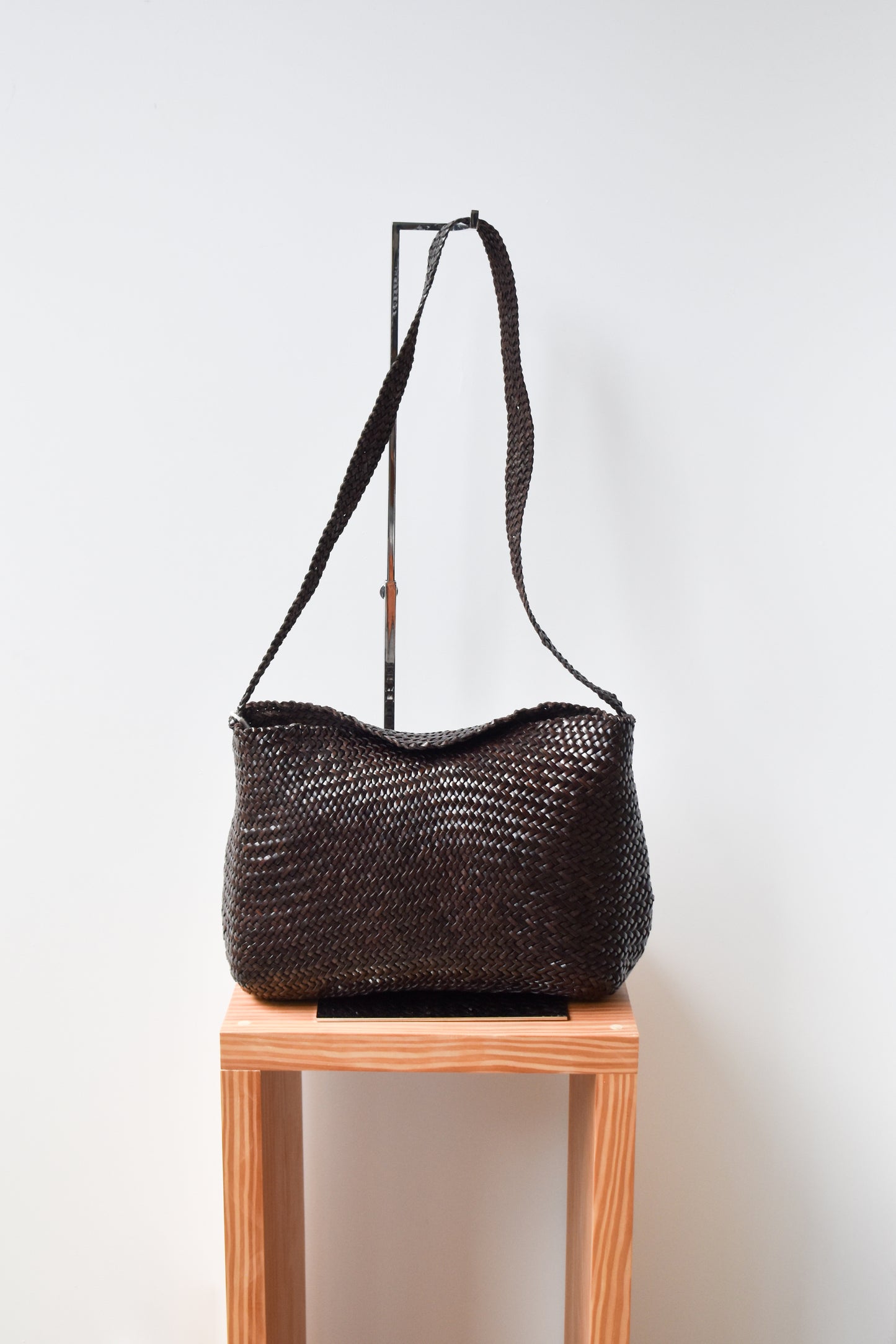 The "Santa Marta" is a woven buffalo leather bag featuring a distinctive 3.5mm diagonal weave that gives it texture and structure. It closes with a flap and a magnetic button for a clean, secure finish. Designed with a shoulder strap, it can be worn comfortably over the shoulder or across the body. With its mix of craftsmanship and everyday practicality, the Santa Marta is a versatile piece for any wardrobe.