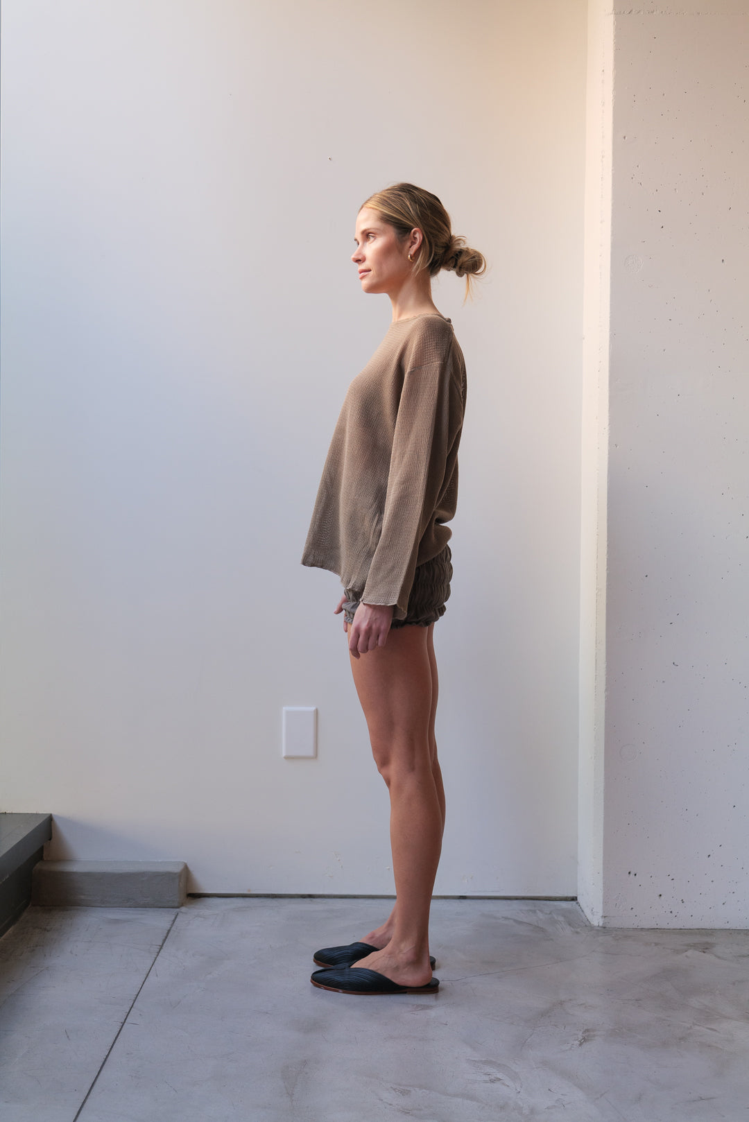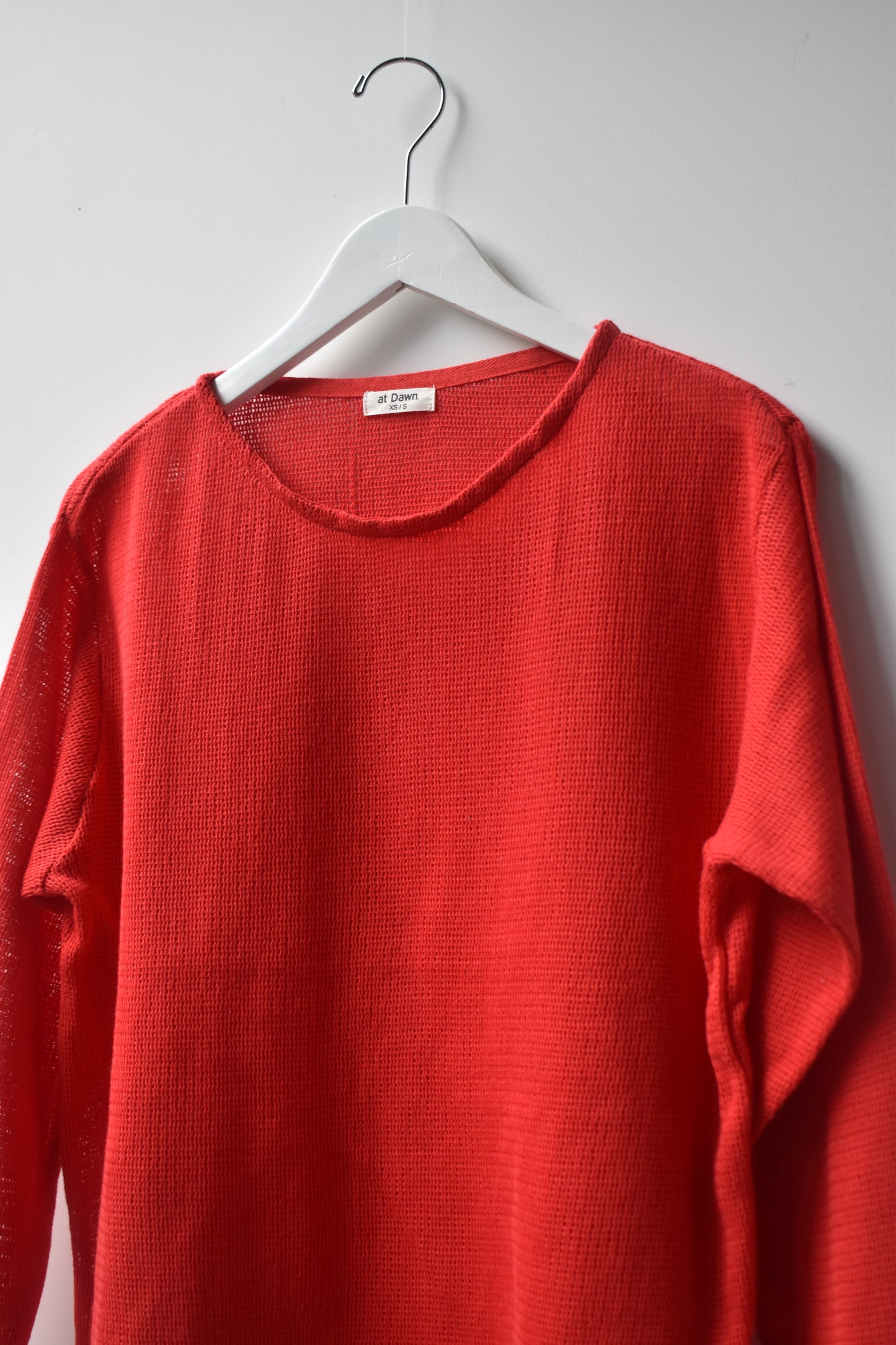 Oversized boatneck long sleeve top, made with sheer mesh cotton knit.