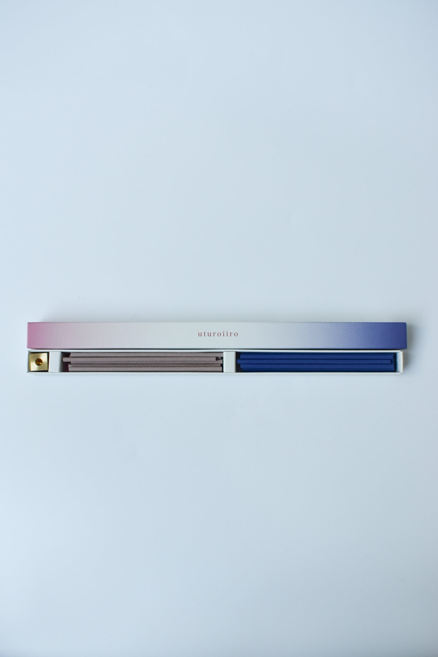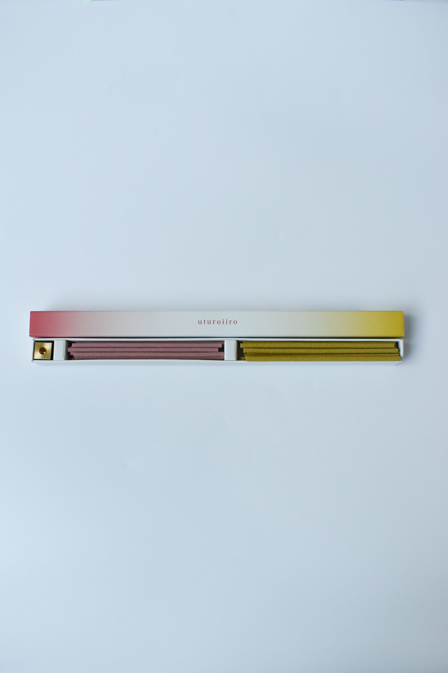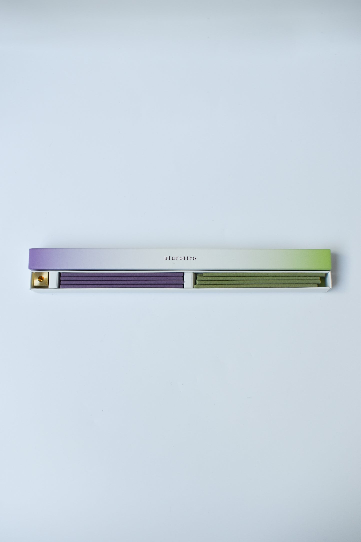 The "Utsuroiiro" incense beautifully shifts colors and scents of your space. Each set includes two types of incense and a solid brass incense holder.