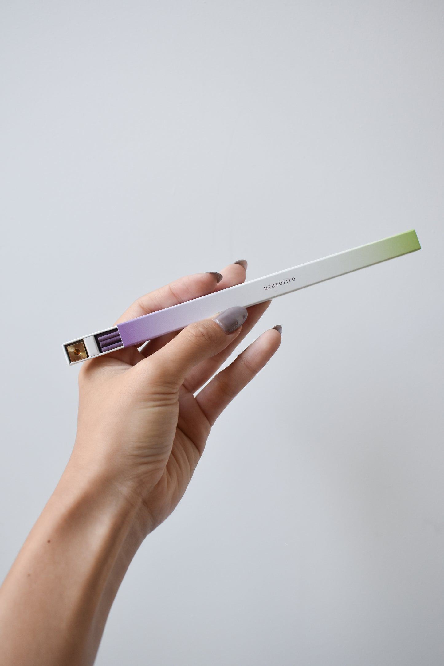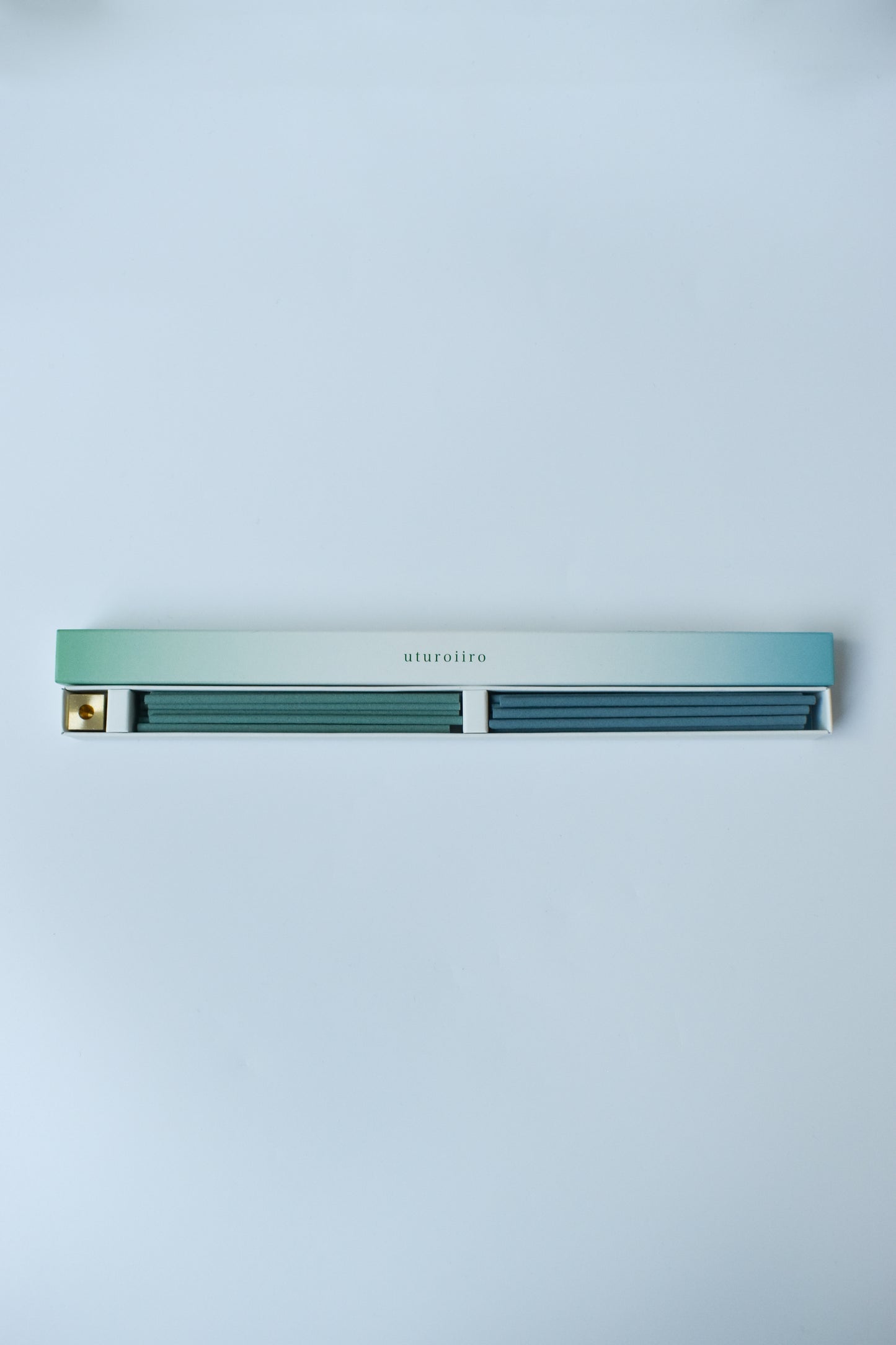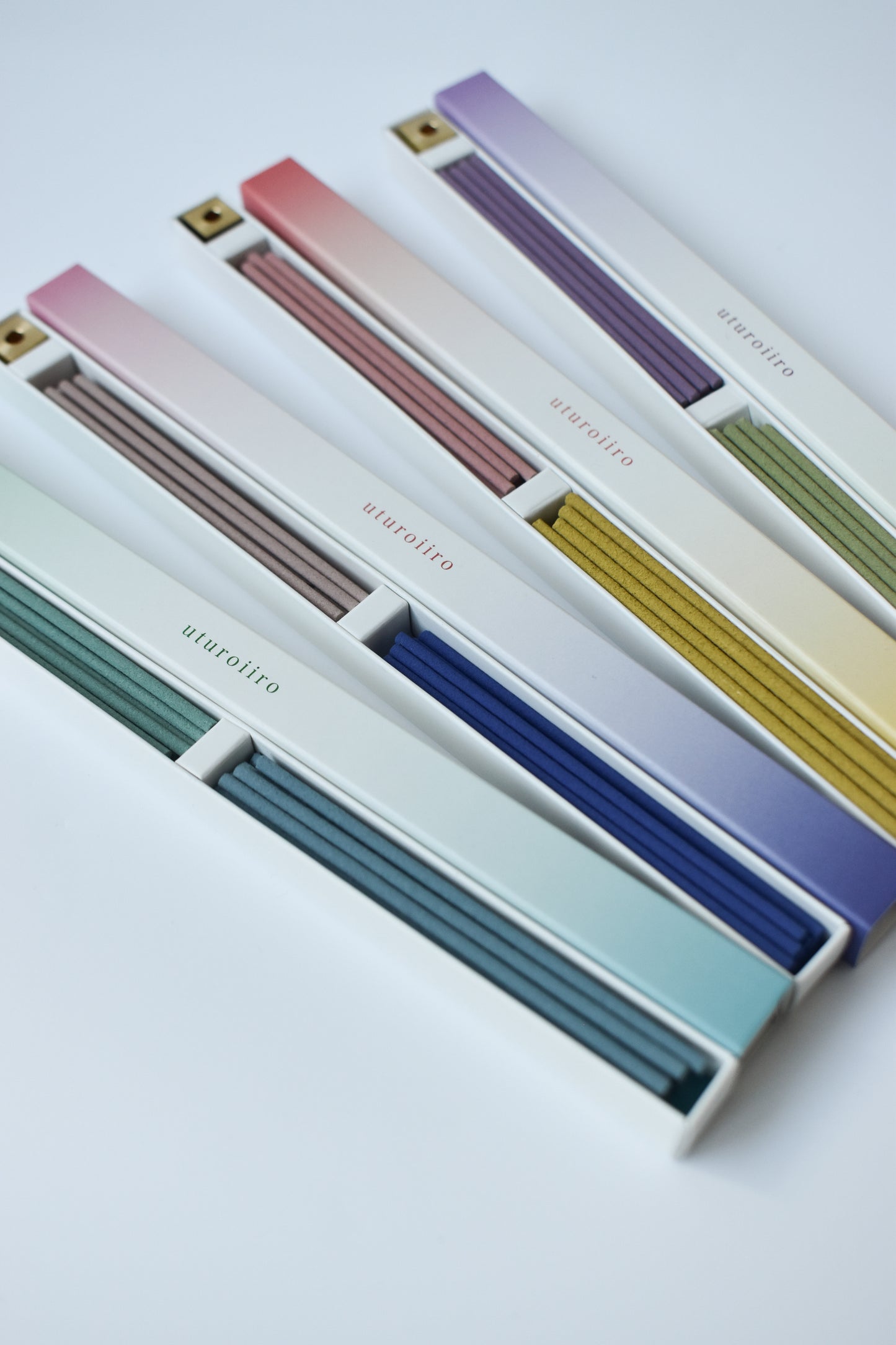 The "Utsuroiiro" incense beautifully shifts colors and scents of your space. Each set includes two types of incense and a solid brass incense holder.